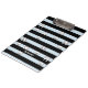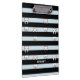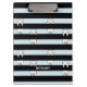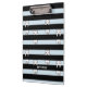 Quirky cute white cats climbing on black stripes personalised clipboard. You can change the colour of the light blue stripes.