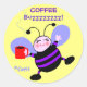 Cute Coffee Caffeine Buzz Busy Bee Purple Stripes Classic Round Sticker