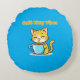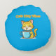 **Cute Coffee Cat – Adorable Cat Drinking Coffee I Round Cushion