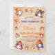 The invitation background is a blend of soft purples and orange. Below that, there’s space to fill in all the party details, like the date, time, and location, surrounded by cute little coffee mugs and friendly ghost illustrations. This invite is the perfect mix of spooky fun and cosy cuteness, setting the tone for a birthday party full of smiles, laughter, and playful ghostly charm!