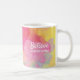 Cheerful, inspirational morning quote, "Believe in Good Coffee!" This is a design featuring words of wisdom for coffee lovers everywhere in search of that perfect morning brew. Design has a colourful abstract floral watercolor background in pastel tones of pink, yellow and turquoise. Fonts is bright white. Colour of font can be easily customised in the Zazzle design tool section. Other designs available.