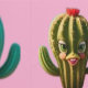 Small, adorable cacti, each in a unique pot. With unusual, bright colors: some have delicate mint green hues, while others sport a soft sky blue. Some have little flowers on the top, like wreaths of sunshine yellow or bright pink, have rounded shapes and a cozy, friendly appearance.