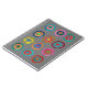Colorful whimsical playful design of watercolor rainbow circles against a gray neutral background. This cute modern Scandinavian infuenced design is simple and modern.