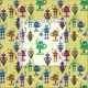 Cute colorful robots on yellow background fabric