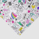 So much fun in one print! This pattern is a black and white cartoon sketch with colourful touches throughout. Features pieces like rainbow clouds, flamingos, doughnuts, cupcakes and ice cream, 80s icons, skateboards, anchors, sneakers, cacti, moustaches, cameras and SO MUCH MORE!!! Great for an 80s party, or just a tonne of every day fun.