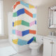 This stylish shower curtain features a colourful and whimsical pattern of geometric shapes and stripes.