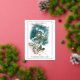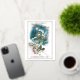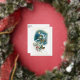 Beautiful, unique, classic, trendy, pretty and decorative Christmas greeting card on a vintage teal blue coloured background, with cute birds in a wintery snow landscape. With room to customise or personalise with your family name and current year to date. And a customisable season greeting poem on the backside of the card, including your return address, city, zipcode and state.