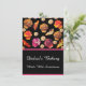 Cute, customisable menu with custom text templates front and back, featuring on a black background hand drawn and digitally designed colourful, foil textured, muffins, croissants, and cinnamon rolls.