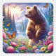 Cute, colourful bear & butterflies square sticker