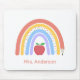 This teacher mouse pad features a cute pastel coloured rainbow accented with a pencil and a red apple. Personalise with the teacher's name.