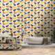 Cartoon bactrian two-hump camels cavort against a desert sand coloured background. This cute patterned peel and stick wallpaper featuring camels in navy blue, medium blue, orange and yellow will be a big hit with camel fans of all ages.