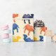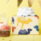 Cartoon bactrian two-hump camels cavort against a desert sand coloured background. This cute wrapping paper featuring camels in navy blue, medium blue, orange and yellow will be a big hit with camel fans.