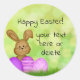 Make Easter egg-stra magical with these cute, colourful stickers featuring a sweet smiling cartoon bunny and purple Easter eggs on a grassy green background. Perfect for holiday gifting, cards or crafts, the sticker text reads "Happy Easter!" with additional space for your own message (or leave blank). A fun, whimsical addition to your Easter celebrations. Great for kids or adults alike!
