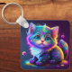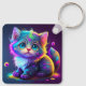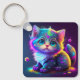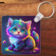 Cute Colourful Cat Digital Artwork-79827 Key Ring