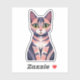 Cute, Colourful Abstract Cat, Fun, Chic, Animal, Whimsical sticker. This sticker is designed to melt hearts and spark smiles. Featuring a beautiful portrait of a cat with soulful green-yellow eyes and a dreamy, quilt-like fur pattern in soft pinks, corals, navy, and white. Checkout our other cat lover collection! Thanks for visiting our store. Copyright Soar In Style Designs LLC.