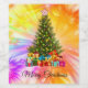 Cute decorated Christmas tree with colourful gifts on colourful fireworks background, with text...Merry Christmas... You can easily personalise with your choice of text.