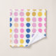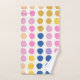 This fun bath towel set features a Scandinavian style pattern of cute colourful dots in bright blue, pink, purple, and yellow. Great gift idea.