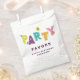 Cute and colourful birthday favour bag for a toddler or young child featuring adorable illustrations having a party. Perfect for girl or boy birthday.