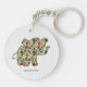 Cute pastel tones retro flowers baby elephant on white stripes background. Green Overtones Customisable text on from tan back.