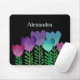 Personalise this cute and girly mouse pad. Pink, blue and purple flowers and green leaves on a black background.