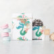 Cute and colourful floral mermaid in a seamless pattern over a white background.