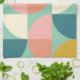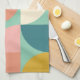 Cute Colourful Geometric Shapes Pattern in Teal Tea Towel