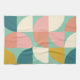 A fun retro mid century modern style geometric shapes pattern in cute colour shades of teal, mustard, coral, and pink.