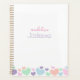 Stay organised in style with this adorable pastel hearts personalised planner. The design features a clean white background with a border of colourful pastel hearts and your custom name in playful fonts. The back cover has a lovely lavender colour for a soft, charming touch. Perfect for students, teachers, or anyone who loves cute stationery!