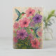 This birthday card is remarkable for its elegant and unique design. It features a classic "Happy Birthday" greeting printed in real gold foil with beautiful calligraphy. The front showcases stunning pink and violet purple Petunia flowers surrounded by Hummingbirds. On the back, there is space for your name(s) and a personalised message. It's a stylish way to convey your birthday wishes.