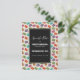 A save the date party postcard with a cute pattern of macarons in many different colours with a faint polka dot pattern behind. A black rectangle layered over top with your text inside.