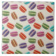 Ceramic tile with a cute pattern of macarons in many different colours with a faint polka dot pattern behind.