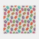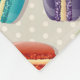 Blanket with a cute pattern of macarons in many different colours with a faint polka dot pattern behind.
