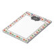 Personalised notepad with a cute pattern of macarons in many different colours with a faint polka dot pattern behind. A white frame in the centre to write inside with a fancy vintage-looking black and white decorative frame at the top with yourpersonalized text inside.