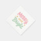 Modern Christmas paper napkins featuring a cute and fun design with "Merry and Bright" in cheerful pastel pink and green casual lettering.