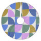 This stylish holiday Christmas tree skirt features a modern geometric pattern of shapes in green, violet pink, goldenrod, and blue.