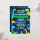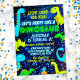 Introducing our "Let's party like a dinosaur" birthday invitations in bright neon colours of green, blue and yellow.