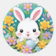 Cute Colourful Playful Easter Bunny Flowers Sticke Classic Round Sticker
