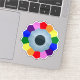 A cute colourful rainbow flower sticker would likely feature vibrant hues representing the spectrum, showcasing petals in shades like red, orange, yellow, green, blue, indigo, and violet. This whimsical design could evoke feelings of joy and positivity, making it a perfect addition to notebooks, phone cases, or craft projects. Ideal for adding a cheerful touch to any surface, these stickers can celebrate nature's beauty and diversity.