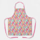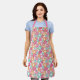 This cute kitchen apron has a retro look with it fun and flirty floral print. Brightly coloured flowers in blue, pink, orange are set together in a busy pattern against a white background. So cute for a girly girl.