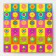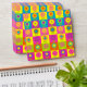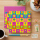 Gorgeous, colourful design featuring vintage, folk style drawing of flowers on a vibrant, tiles background. Modern and retro ornate pattern with pink, yellow and green elements. Sweet, elegant and stylish gift for every woman.