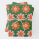 Cute Colourful Retro Flower Pattern Green and Pink Wrapping Paper Sheet