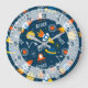 Cute Colourful Space Adventures Pattern Large Clock