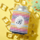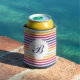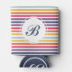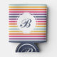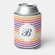 Cute Colourful Striped Pattern With Monogram Can Cooler