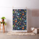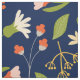 Modern colourful botanical summer flowers and leafs seamless pattern with changeable midnight blue background colour.