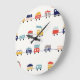 Cute, colourful trains seamless pattern. large clock