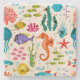 Cute colourful marine tropical waters life and animals illustration. Sea horses, fish, corals, seaweed.