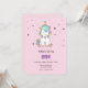 Celebrate your little one's birthday with our fun and colourful birthday invitation. This design features a hand drawn cute illustration of a smiling baby unicorn, surrounded by colourful little stars on a pastel pink background. Personalise with your own details or custom text. You can choose the colours of the background and text to match your party colour palette.