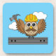 Cute Construction Worker Owl with Hard Hat Cartoon Coaster