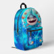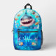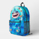 Cute Cool Happy Shark Blue Ocean Name Monogram Boy Printed Backpack
