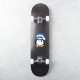 Cute illustration of black and white penguin with blue Santa hat, sun glasses and scarf.